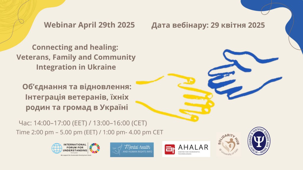 Цей 3-годинний онлайн вебінар (14:00–17:00 EET) надає можливість для взаємного навчання та обміну досвідом щодо психосоціальних потреб ветеранів, їхніх родин та громад.
