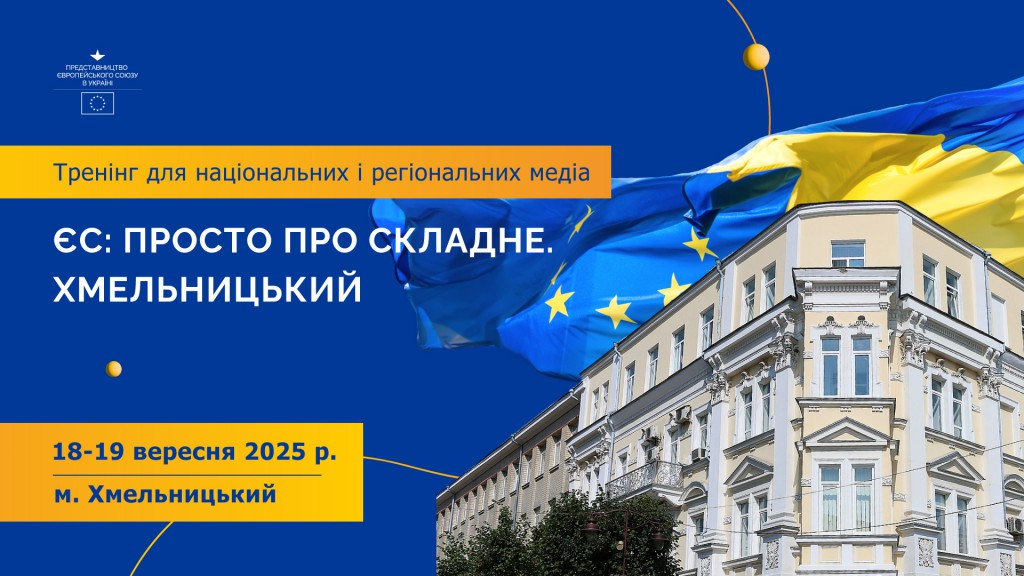 Представництво Європейського Союзу в Україні запрошує журналістів та представників медіа з усіх регіонів країни до участі у дводенному тренінгу «ЄС: просто про складне. Хмельницький», який проходитиме 18–19 вересня 2025 року в Хмельницькому (офлайн). Про це пише Громадський простір.
