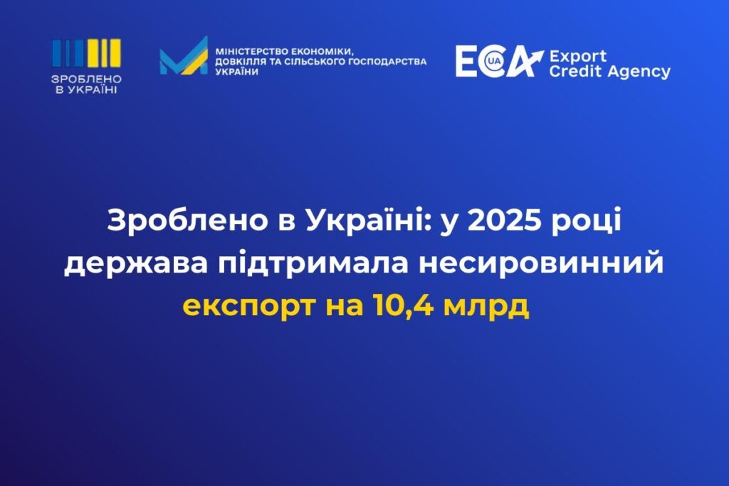 У 2025 році Експортно-кредитне агентство (ЕКА) підтримало український експорт на 10,43 млрд грн — це у 1,4 раза більше, ніж у 2024 році (7,53 млрд грн). Як повідомляє Урядовий портал з посиланням на Міністерство економіки, довкілля та сільського господарства України, коефіцієнт підтриманого експорту до страхової відповідальності у 2025 році склав 7,36 грн на кожну 1 грн страхової відповідальності.