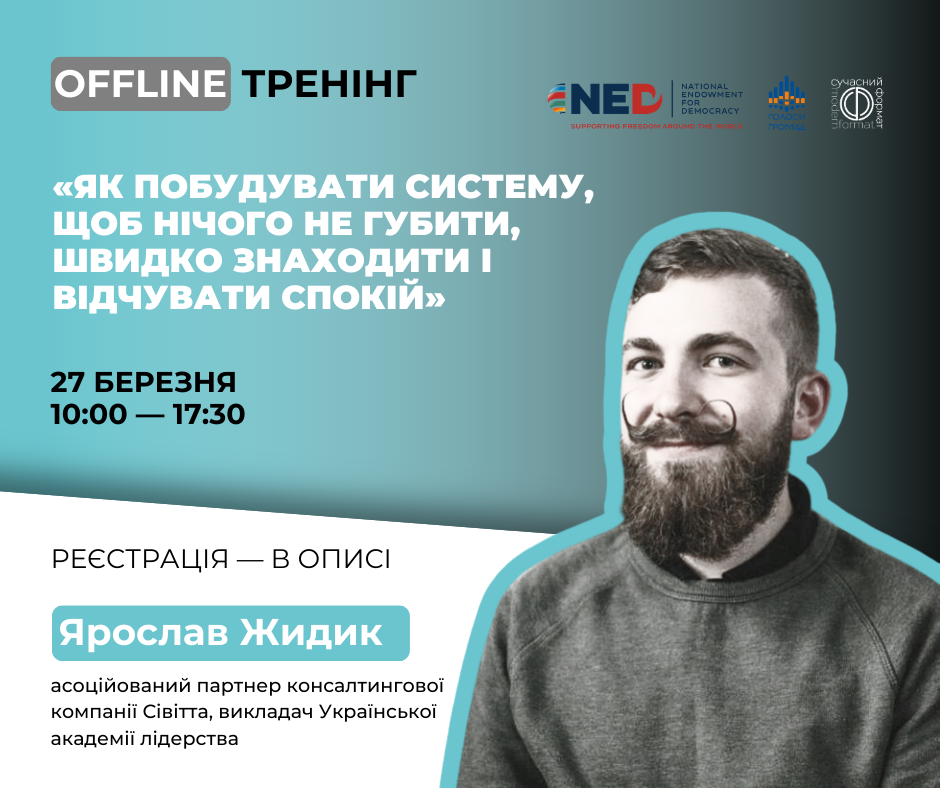 Тренінг проведе Ярослав Жидик — асоційований партнер консалтингової компанії CIVITTA та викладач Української академії лідерства.