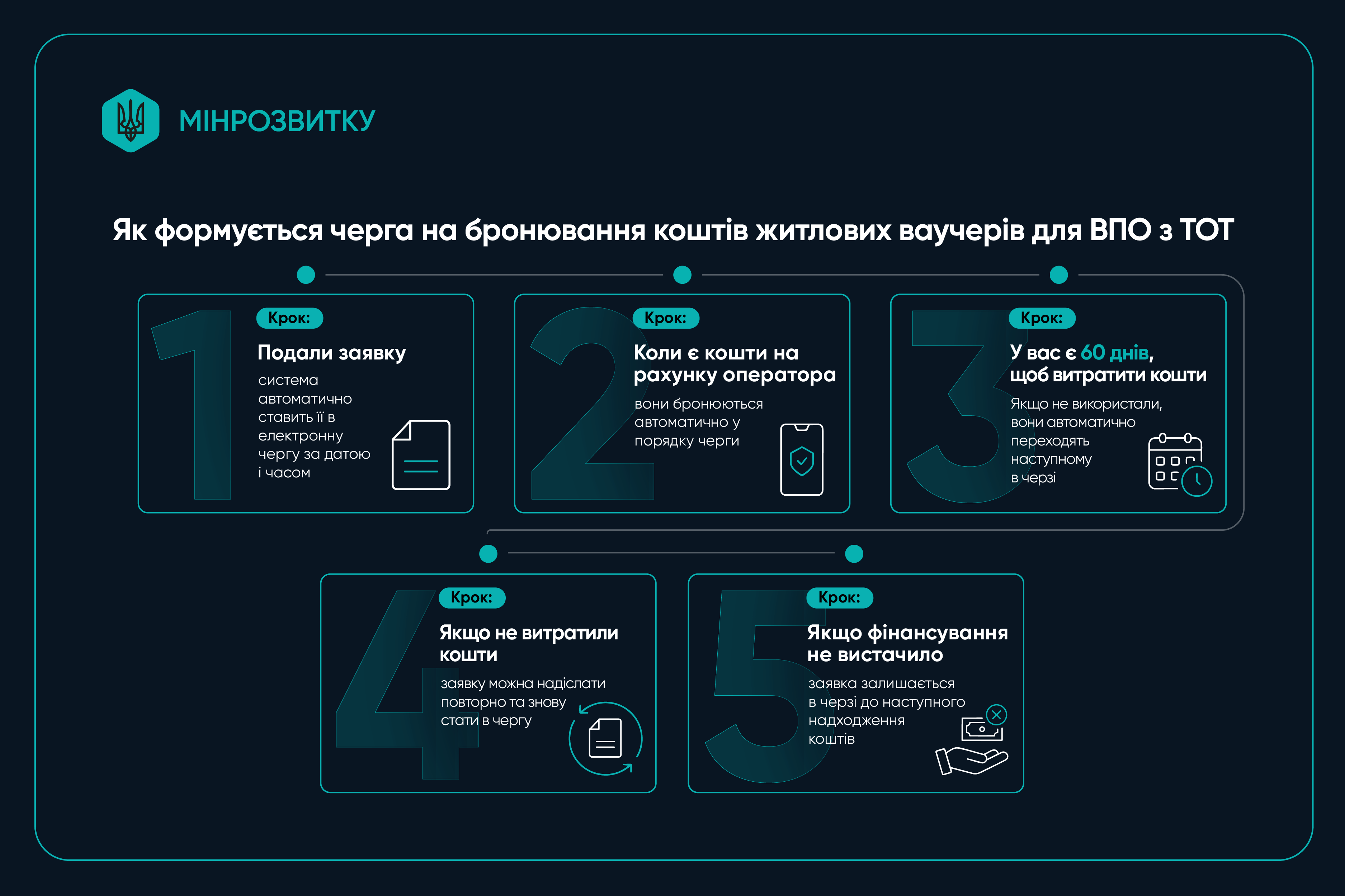 Незабаром стартує бронювання коштів за житловими ваучерами для ВПО з ТОТ, які мають статус учасника бойових дій або особи з інвалідністю внаслідок війни.