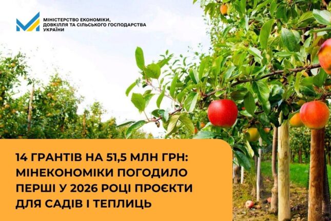 Міністерство економіки, довкілля та сільського господарства України погодило перші у 2026 році гранти на розвиток садівництва, ягідництва, виноградарства та тепличного господарства. Загалом підписано 14 наказів на суму 51,5 млн грн, що дозволить найближчим часом розпочати фінансування відповідних інвестиційних проєктів, повідомляє «Урядовий портал». Зокрема, 11 наказів на 40,5 млн грн – це підтримка проектів зі створення та розвитку садів, […]